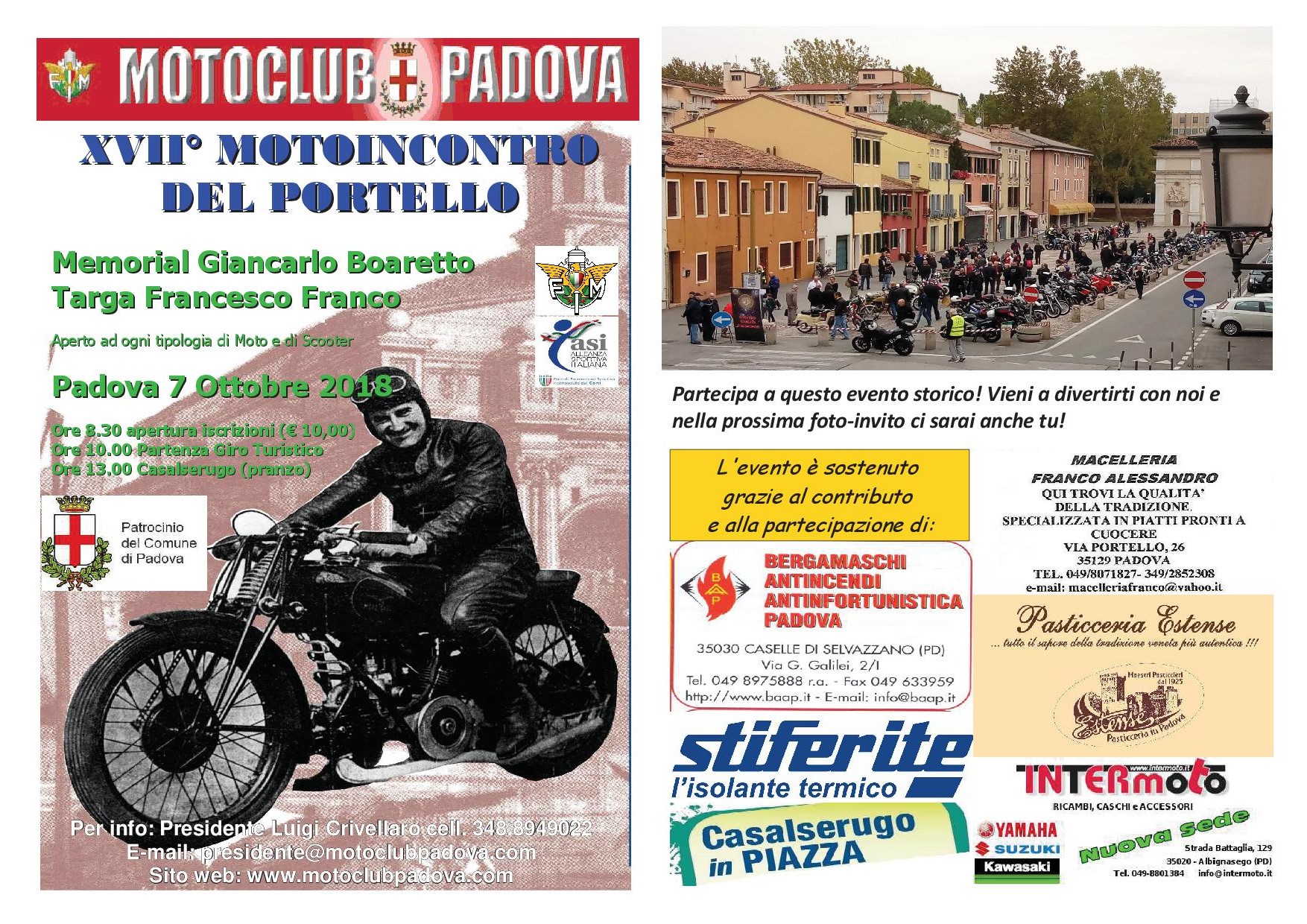 XVIII MOTOINCONTRO DEL PORTELLO 2019!! Anche quest’anno il Motoincontro del Portello ci aspetta!! Giunto alla 18° edizione, questo motoraduno accoglie tutti gli appassionati delle due ruote per stare in allegra compagnia e condividere le proprie esperienze motociclistiche! PROGRAMMA: Dalle ore […]